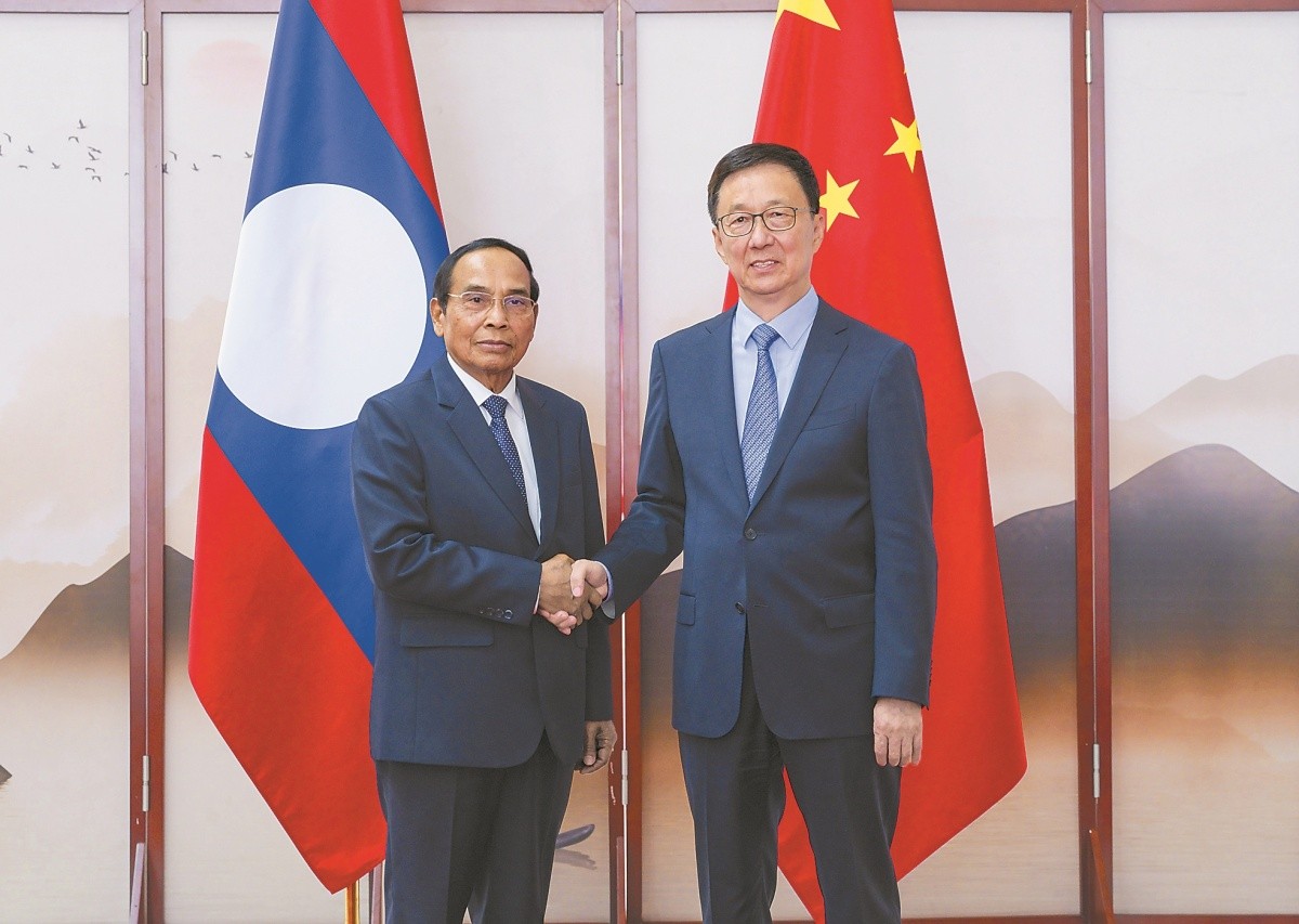 会见本通时,韩正表示,在两党两国最高领导人战略引领下,中老命运共同体建设扎实向前推进。不久前,习近平总书记、国家主席同通伦总书记、国家主席举行亲切会晤,为深化新时期中老全面战略合作擘画蓝图。中方愿同老方共同落实高层重要共识,深化中老命运共同体建设,办好明年建交65周年庆祝活动,让两国传统友好更加深入人心。